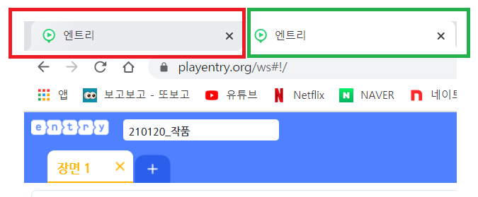 3. 인터넷창에 탭을 하나 추가해서 엔트리 작품만들기 화면으로 이동해둔다.