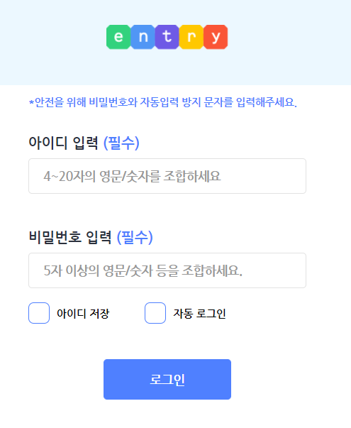 1.먼저 인터넷 창에서 엔트리 사이트에 로그인을 한다.