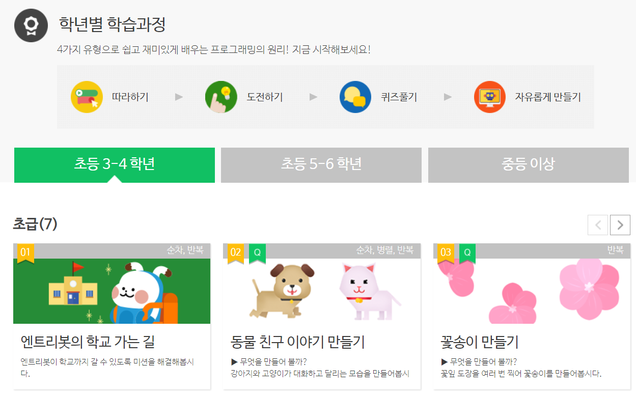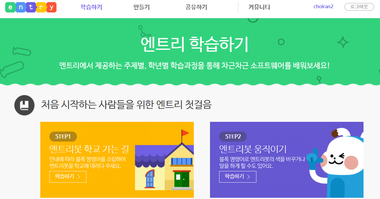 - 학습할수 있는 컨텐츠가 풍부하고 계정간의 작품 공유기능이 발달되어 있어 개인 학습이 용이하다.