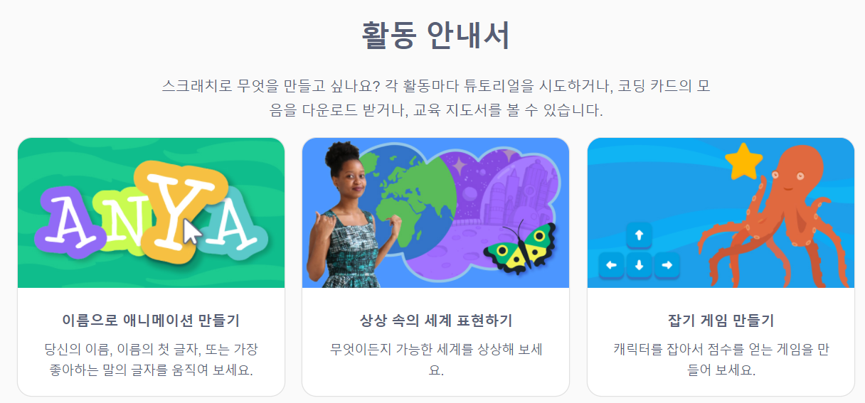 - 스크래치는 선생님 계정이 따로 없고 학급관리 기능도 없다.