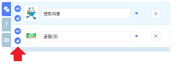 - 오브젝트와 배경 정보의 수정 및 삭제를 하지 못하게 잠금을 설정할 수 있다.